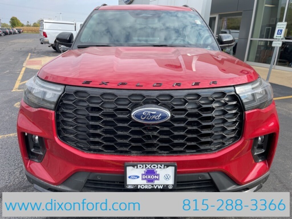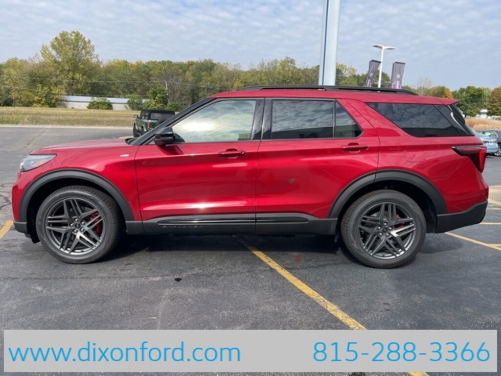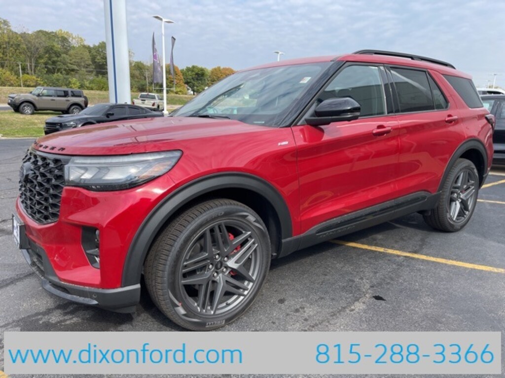 Factory MSRP: $53,370 $5,600 off MSRP! Recent Arrival! Rapid Red Metallic Tinted Clearcoat 2025 Ford Explorer 4D Sport Utility ST-Line 2.3L EcoBoost I-4 10-Speed Automatic 4WD