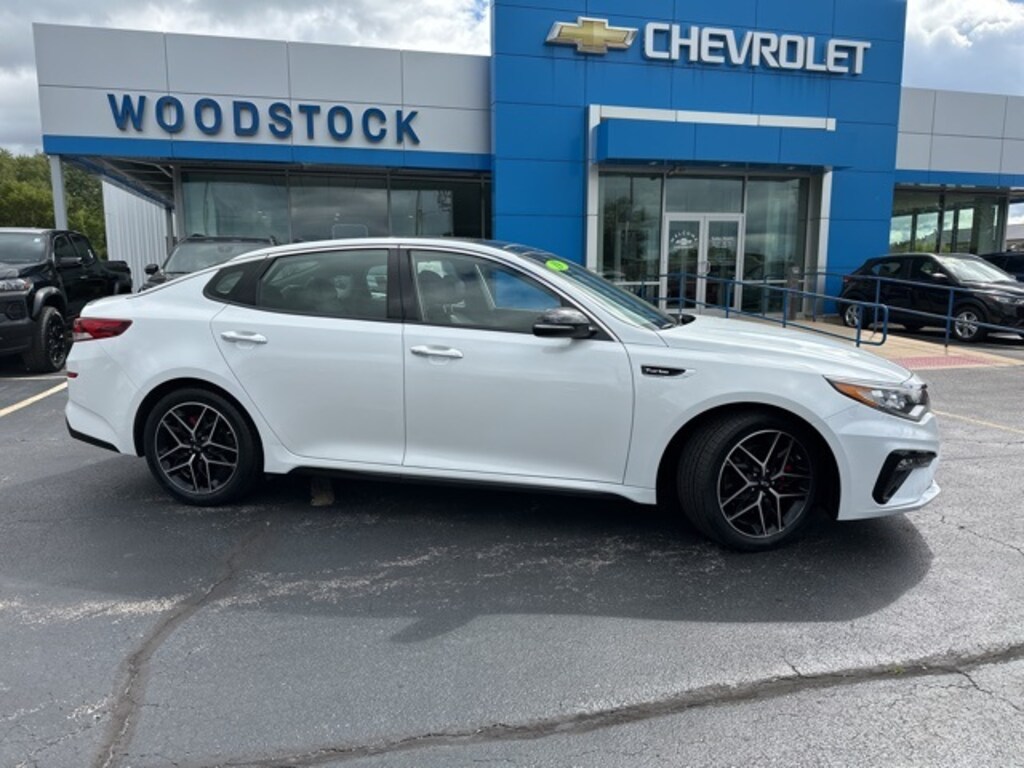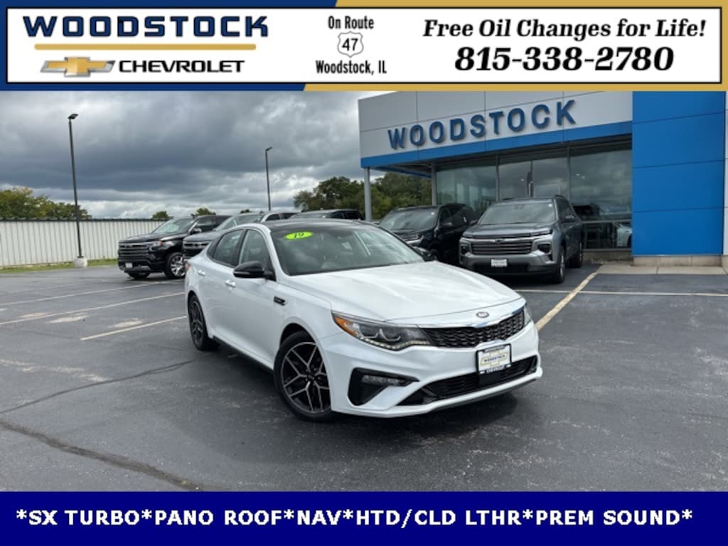 Snow White Pearl 2019 Kia Optima 4D Sedan 2.0L I4 DGI DOHC Turbocharged FWD 6-Speed Automatic with Sportmatic SX Turbo
